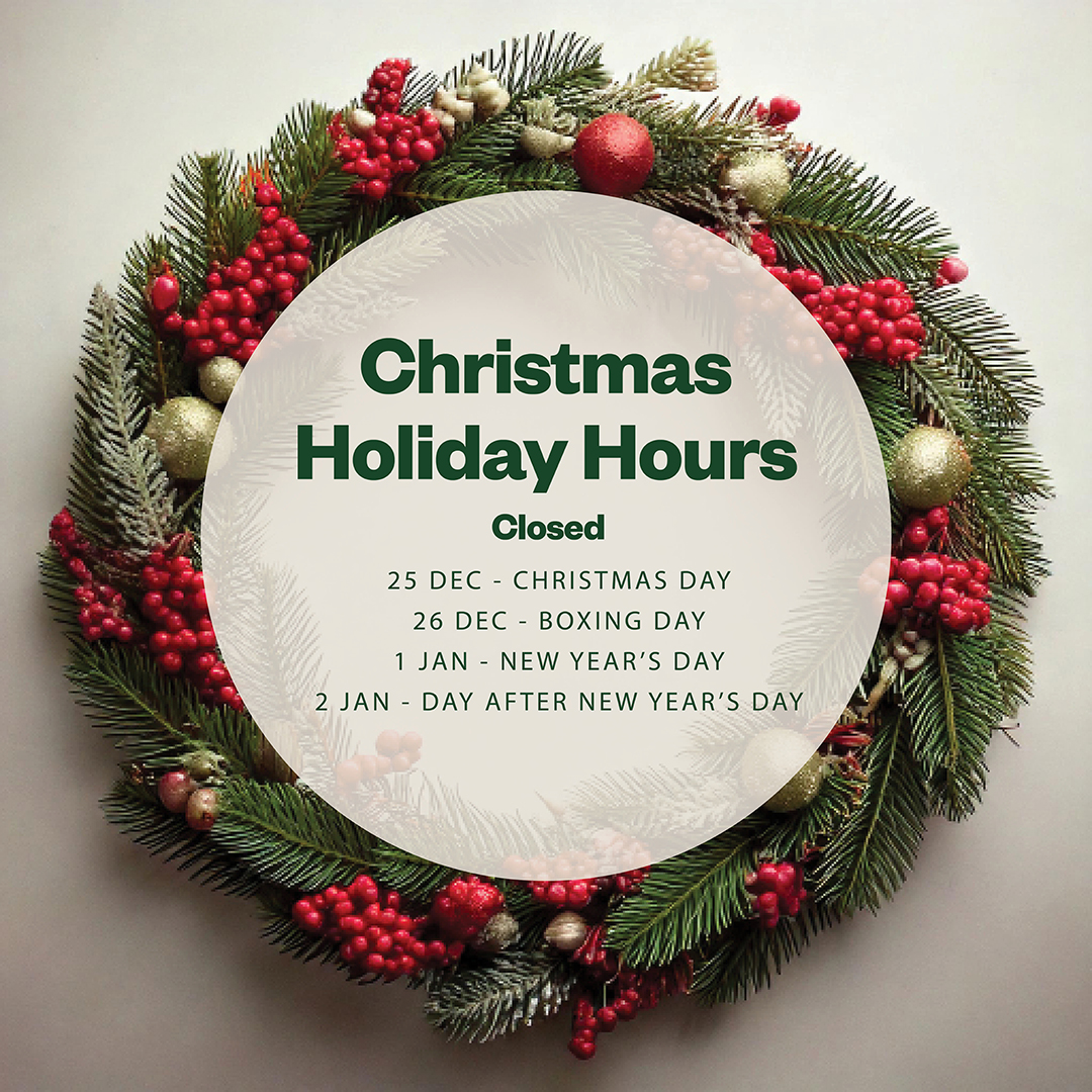 Thank you for all your support this year. We wish you a very safe and happy holidays. Please note our holiday hours below. ✨